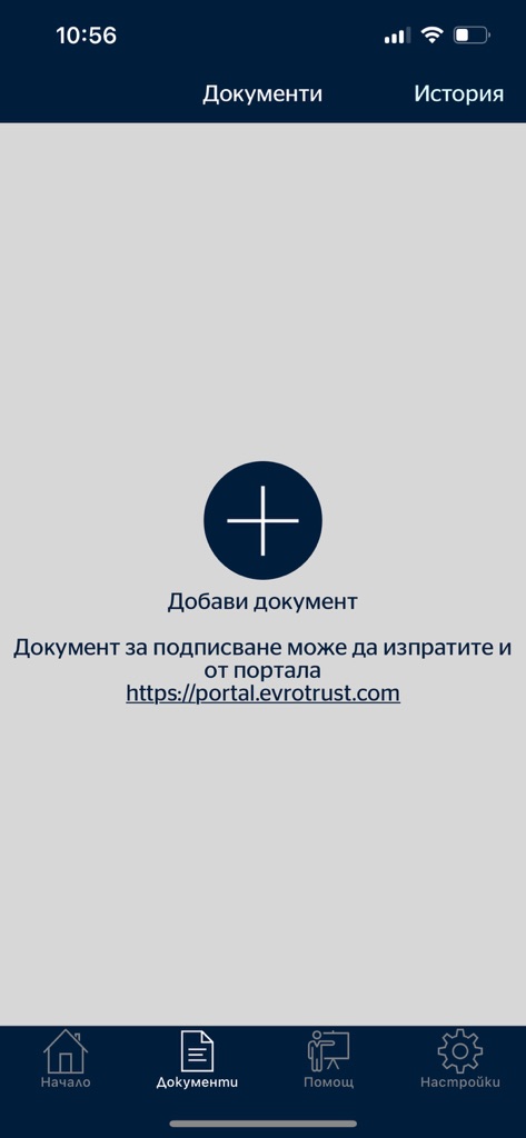 1. След като влезете успешно в мобилното приложение Евротръст, ще видите опцията за изпращане на документ за подпис в таб "Документи".