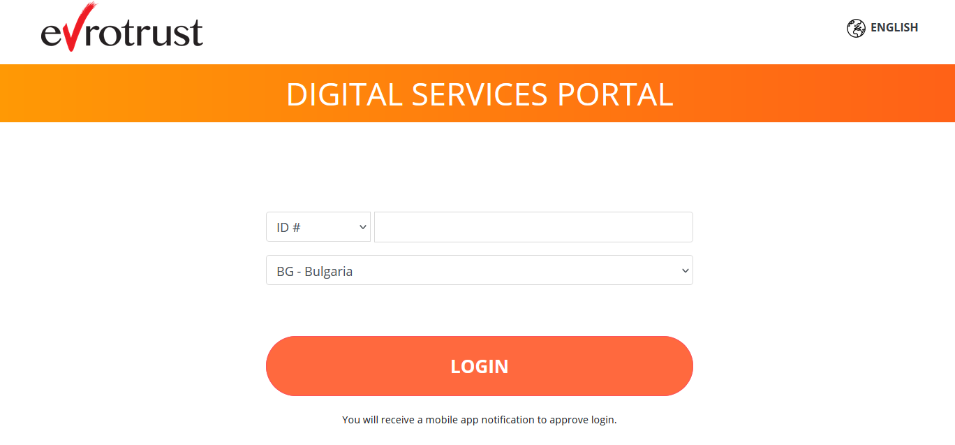 1. Въвеждате идентификатора, с който сте се регистрирали предварително. След това ще трябва да потвърдите влизането от мобилното приложение, на което ще получите нотификация.